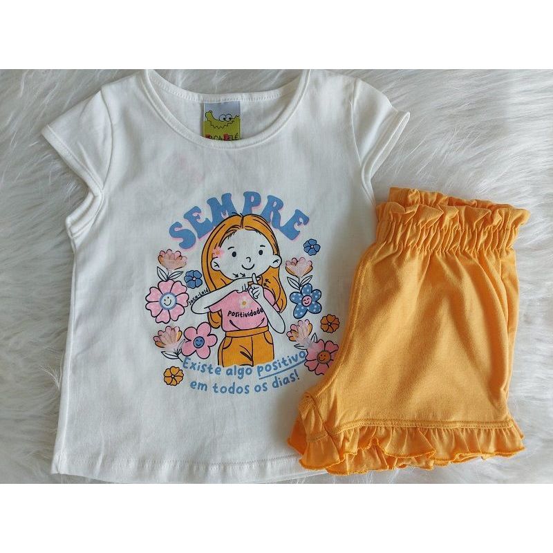 CONJUNTO BLUSA MANGA CURTA EM MALHA COM ESTAMPA E SHORTS MOLETINHO COM ELASTICO NA CINTURA JACA LELE