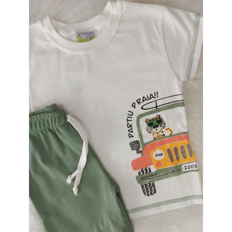 CONJUNTO CAMISETA MANGA CURTA EM MALHA 100% ALGODAO COM ESTAMPA E BERMUDA EM MALHA RIBANA 49% ALGODAO 49 % POLIESTER E 2% ELASTANO COM ELASTICO E CORDAO NA CINTURA MARCA JACA LELE
