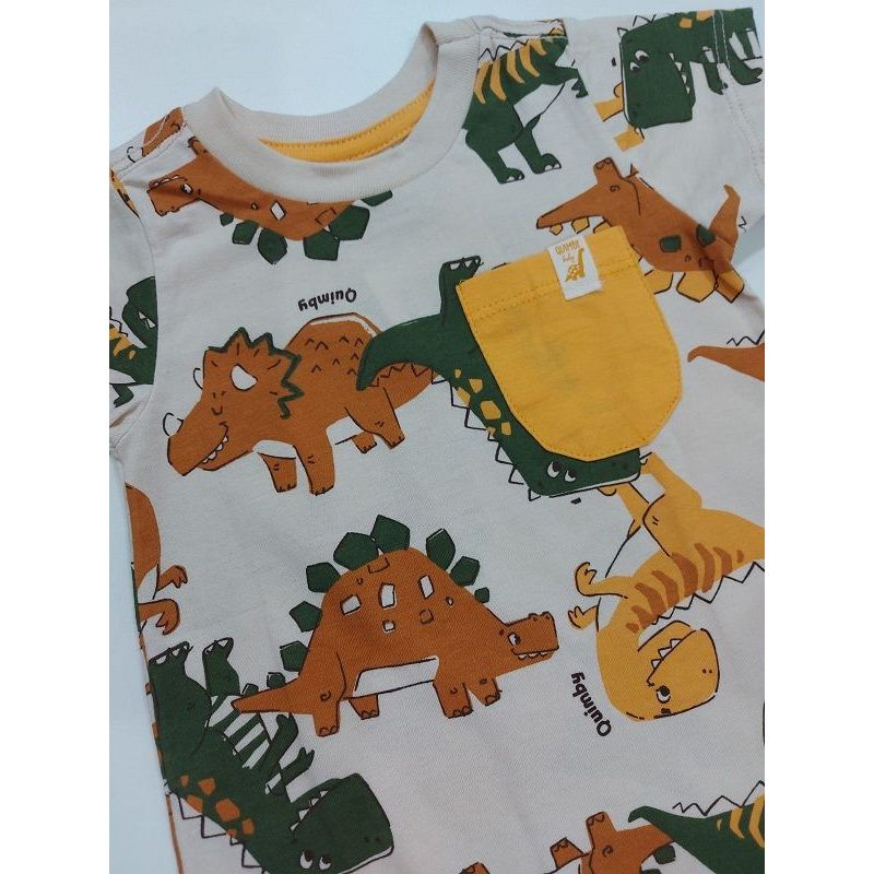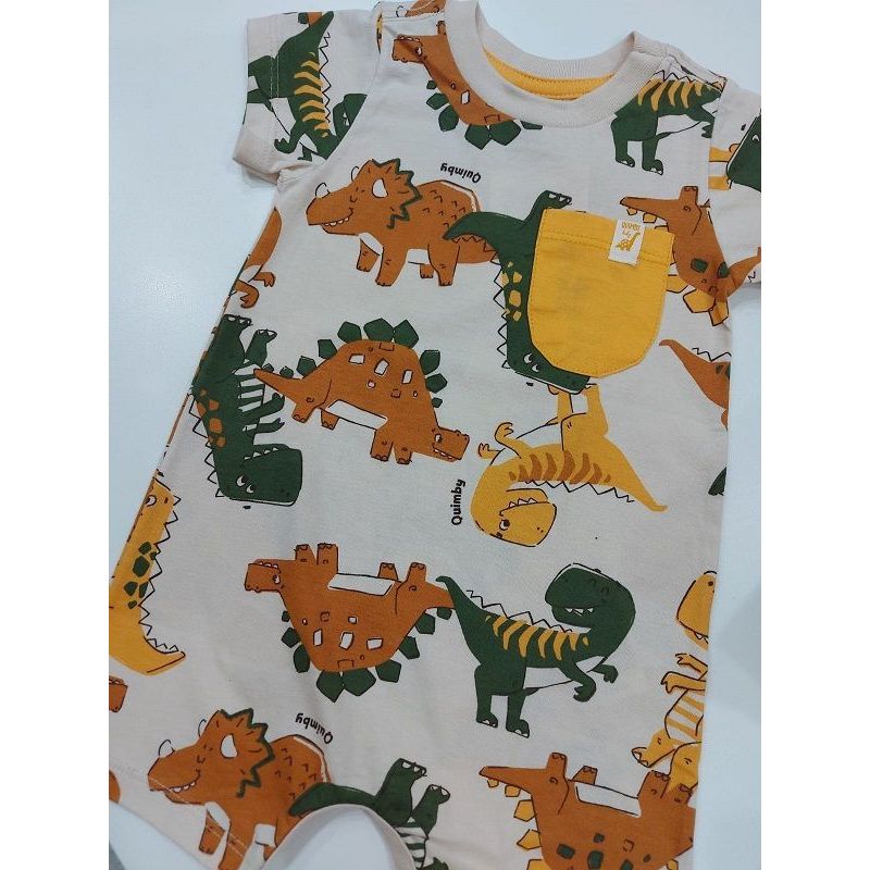 MACAQUINHO CURTO EM MALHA 100% ALGODAO COM BOLSO ESTAMPA DINOSSAUROS ABERTURA COM BOTAO DE PRESSAO NA PARTE INFERIOR MARCA QUIMBY BABY