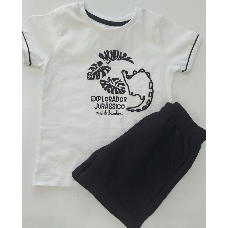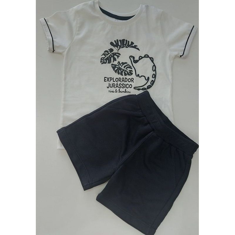 CONJUNTO INFANTIL MASCULINO COMPOSTO POR CAMISETA EM MALHA MANGA CURTA COM ESTAMPA E BERMUDA EM MOLETOM SEM FELPA COM PUNHO NA CINTURA MARCA NINI & BAMBINI