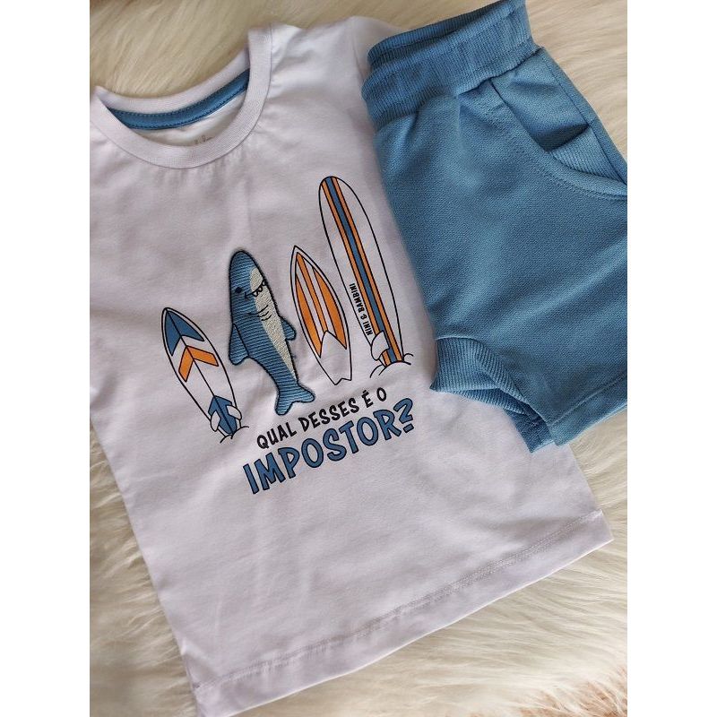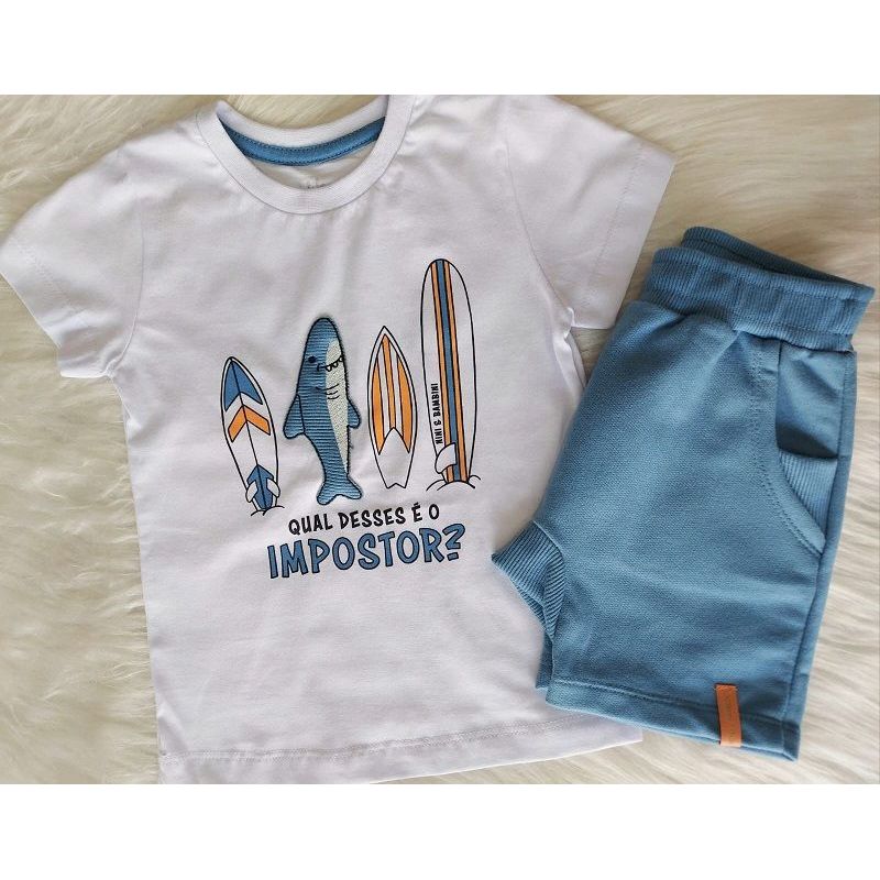 CONJUNTO CAMISETA MANGA CURTA EM MALHA COM ESTAMPA E BERMUDA SARUEL COM BOLSO EM MOLETINHO NINI & BAMBINI