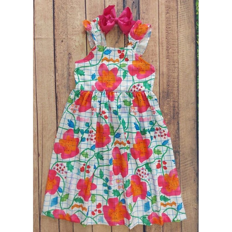 VESTIDO MIDI COM ALCA ESTAMPA JARDINAGEM COM ELASTICO NAS COSTAS 100% POLIESTER